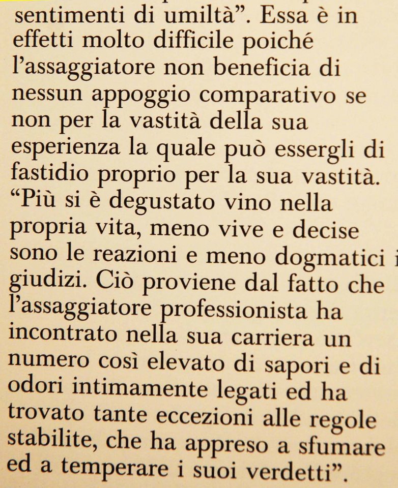 Capita spesso di cercare una cosa e di trovarne poi un’altra. Pochi minuti fa, per esempio, ho trovato la risposta a chi mi chiede il perché della forbice molto ristretta nelle mie valutazioni. una risposta breve ed efficace come solo ai grandi è concesso. Nel caso specifico Michael Broadbent, citato da Emile Peynaud nel libro “Il gusto del vino”, a proposito della degustazione alla cieca. Da lì, da quei testi, dovremmo tutti quanti periodicamente ripartire. come un bagno purificatore.