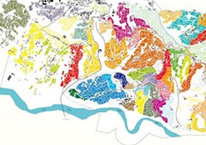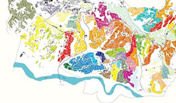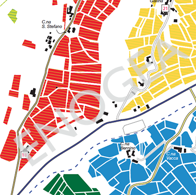 a detailed map of the vineyards of Barbaresco DOCG area showing – in color – the official crus