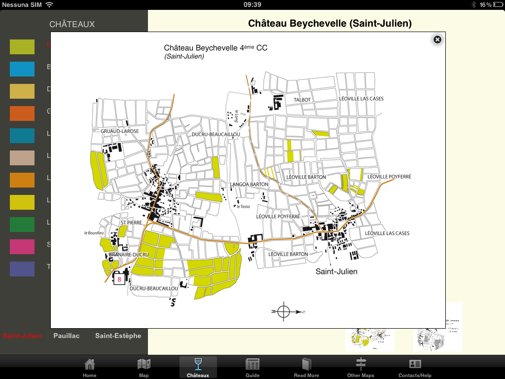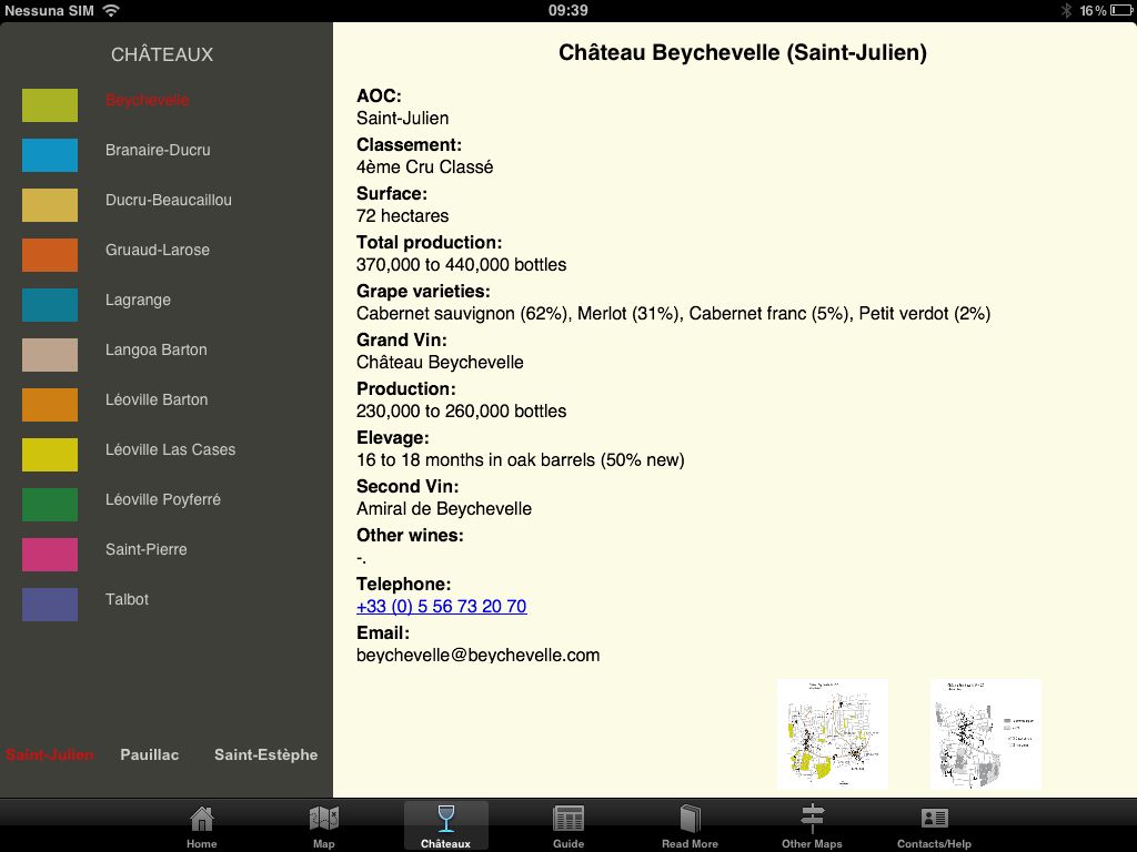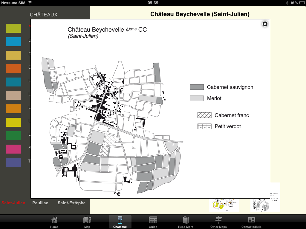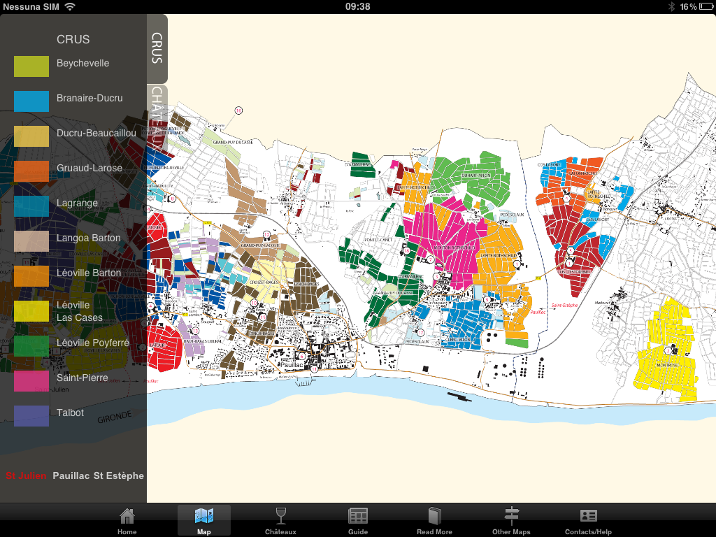 – a detailed, vineyard by vineyard map of the Pauillac, Saint-Julien, and Saint-Estèphe appellations (simplified in the iPhone version).