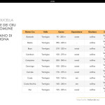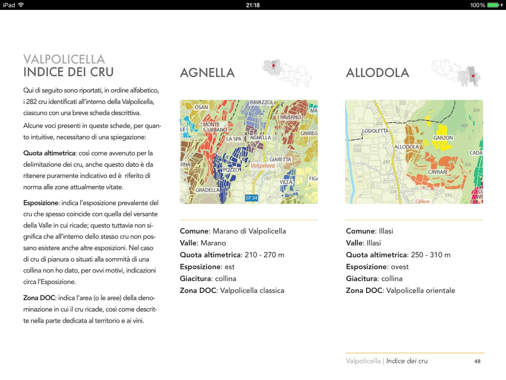 – brevi schede per ciascuno dei 282 cru individuati (comune, valle, quota altimetrica, esposizione, zona DOC di appartenza)