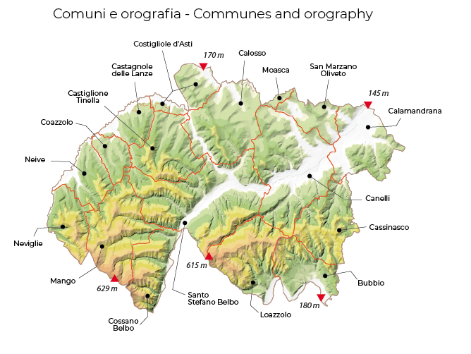 carta a colori con rilievi e tutte le zone di produzione, storiche e meno storiche, rinomate e meno rinomate