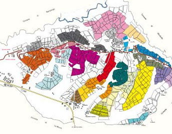 carta a colori con tutti i vigneti presenti sul territorio comunale e ubicazione delle cantine