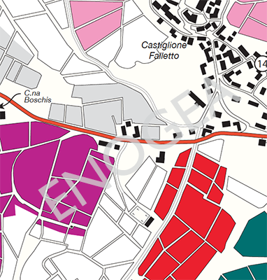 (i colori evidenziano le diverse menzioni ufficiali riconosciute per il comune di Castiglione Falletto)