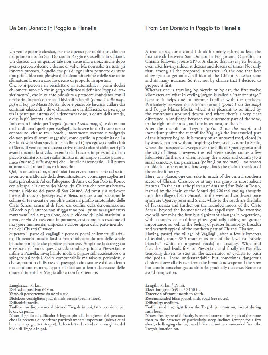 Completano il libro 8 itinerari turistici per scoprire gli angoli più affascinanti del Chianti Classico, lontano dai percorsi più battuti, oltre a numerosi consigli su come e quando bere questo splendido vino conosciuto in tutto il mondo.