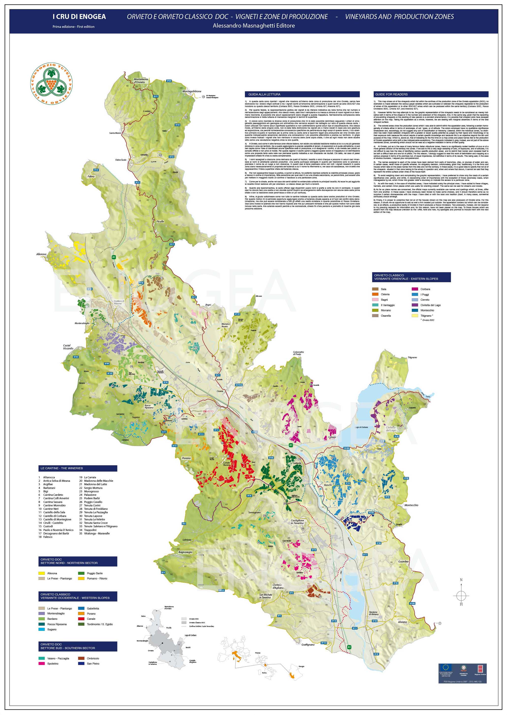 Carta a colori con tutti i vigneti esistenti all’interno della denominazione Orvieto.